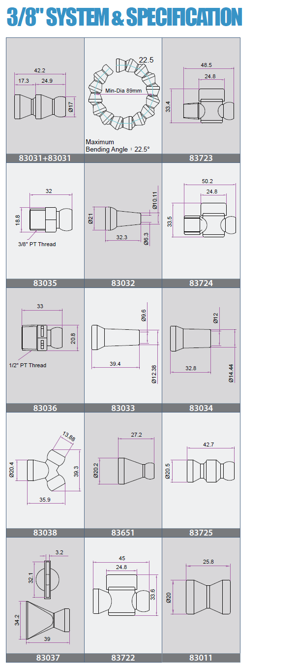 Sada flexibilní hadice 36cm JETON o velikosti 3/8".