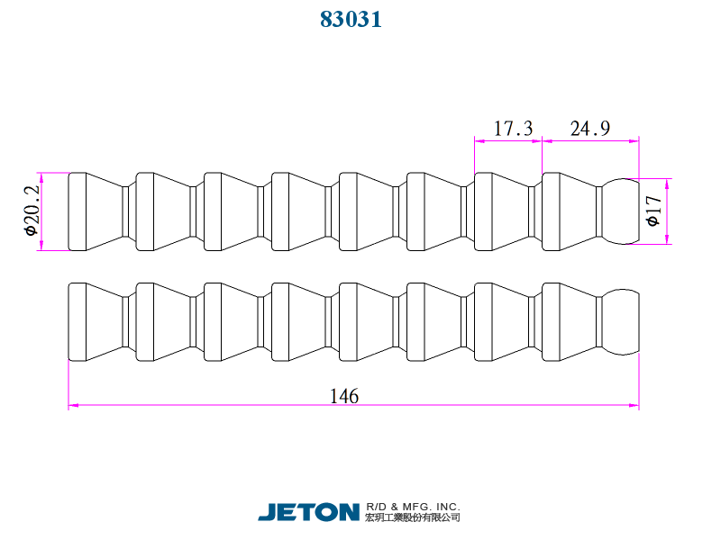 Sada segmentů 14,5cm JETON o velikosti 3/8".