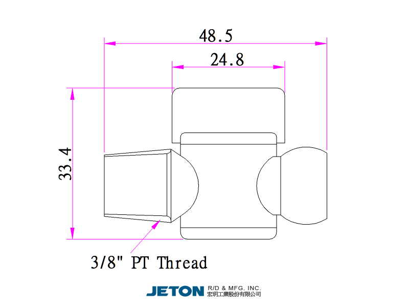Ventil PT JETON o velikosti 3/8" - samec.