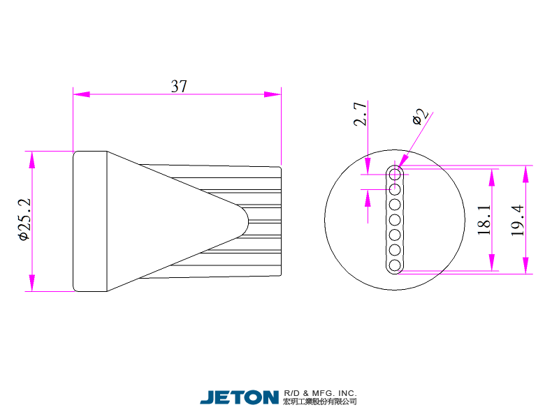 Tryska plochá 7 otvorů JETON o velikosti 1/2".