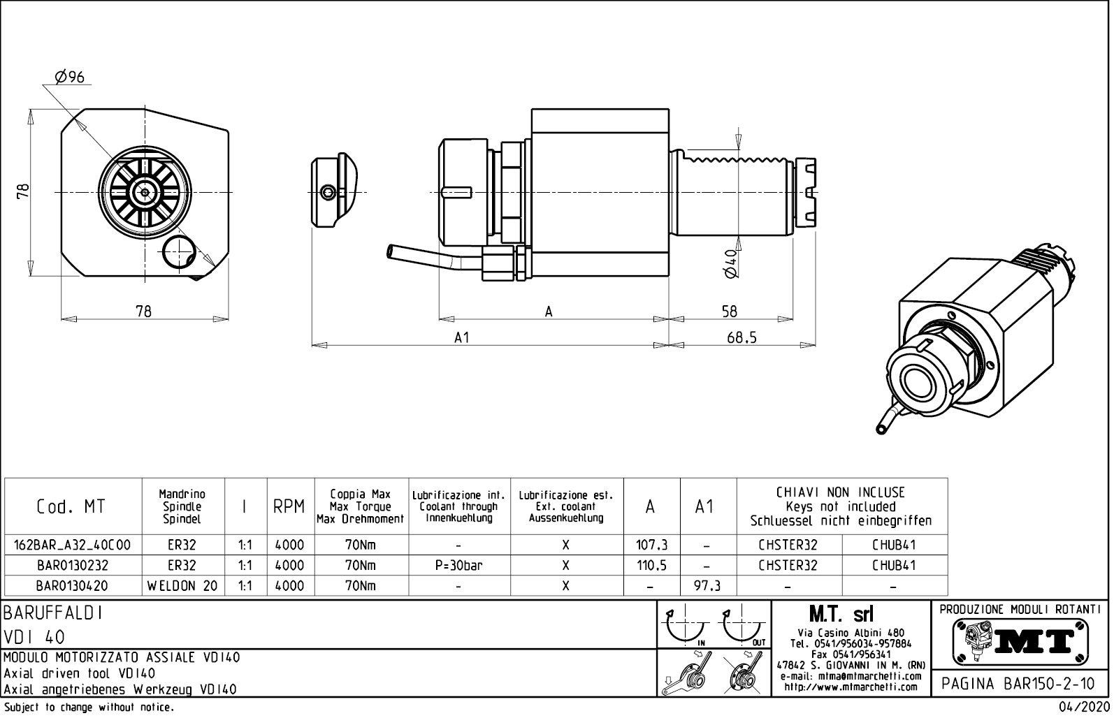 - vnitřní (max.30bar) a venkovní přívod řezné kapaliny.