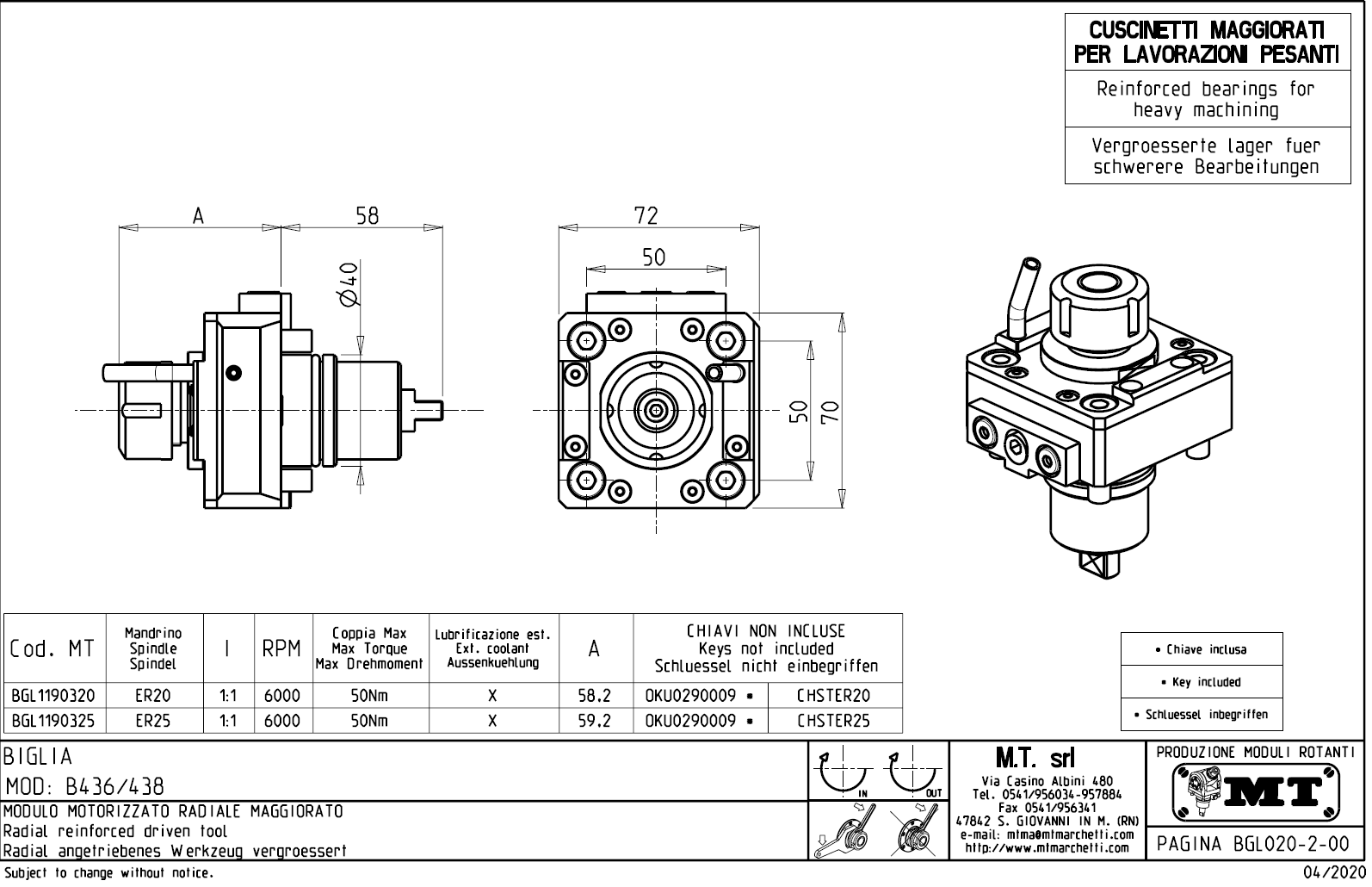 Radiální rotační držák nástrojů pro stroje s nástrojovou hlavou BMT40.