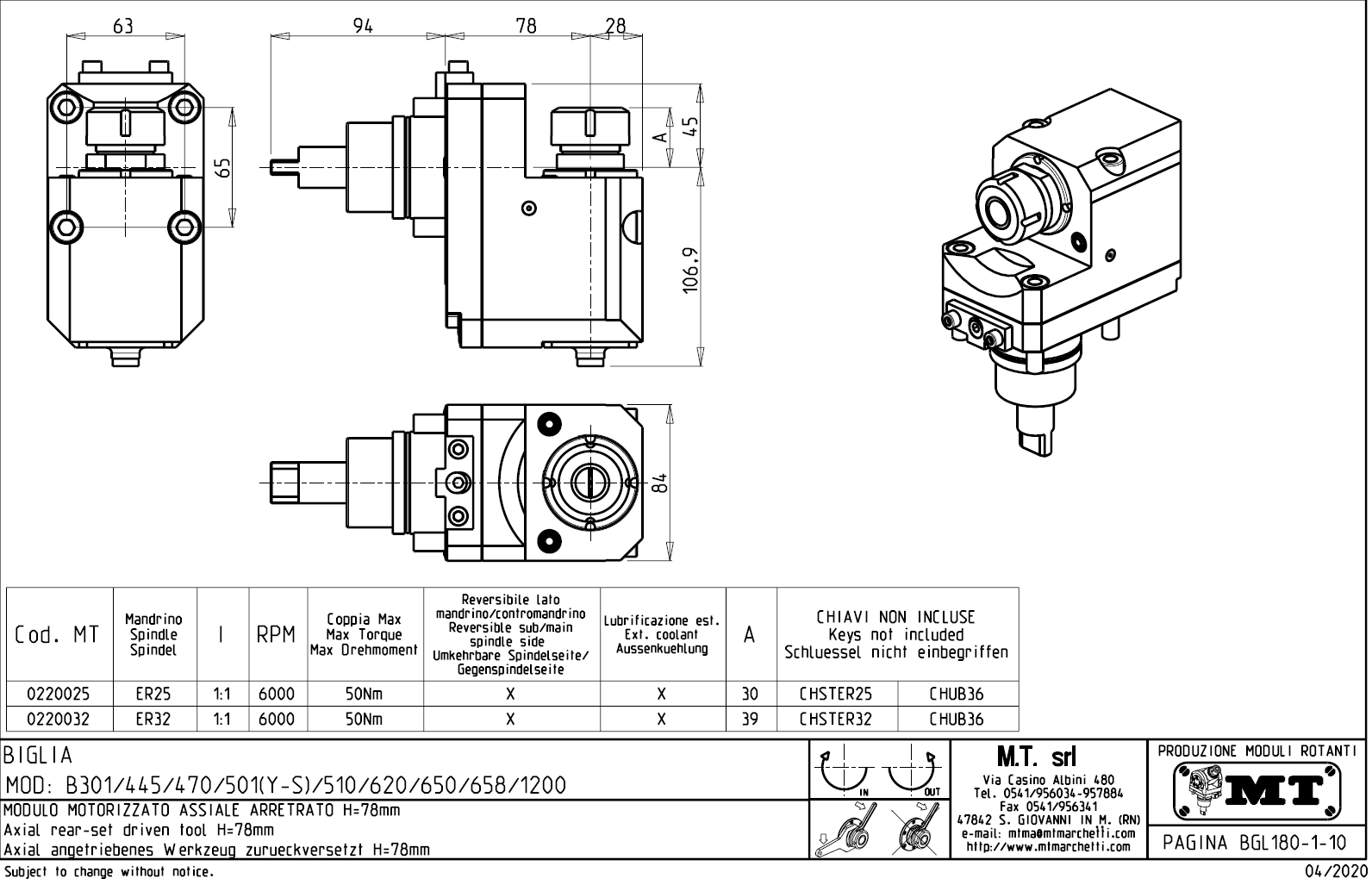 • Biglia - série BV 210 / 315