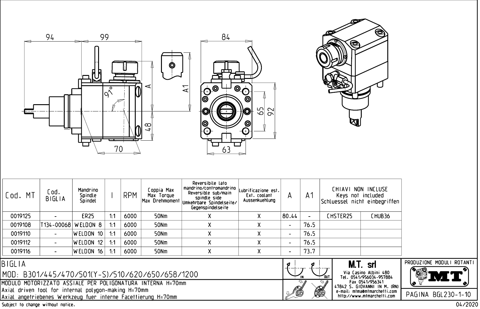 - Biglia - série BV 210 / 315