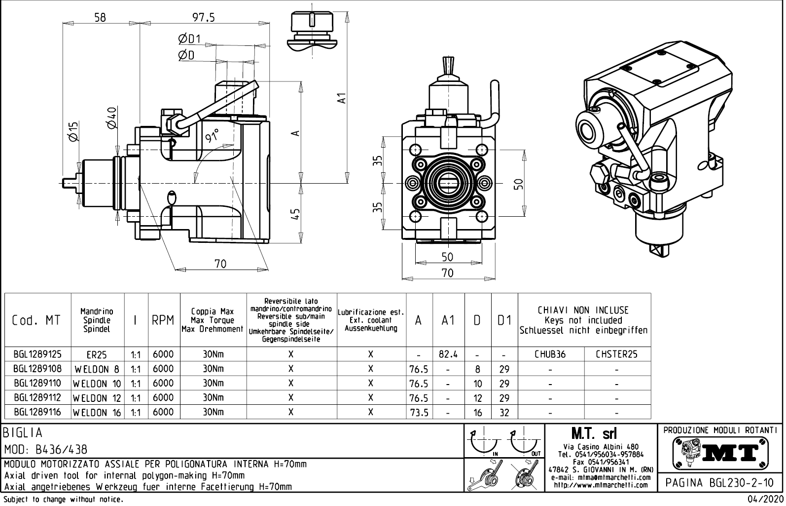 Axiální rotační držák nástrojů pro stroje s nástrojovou hlavou BMT40.