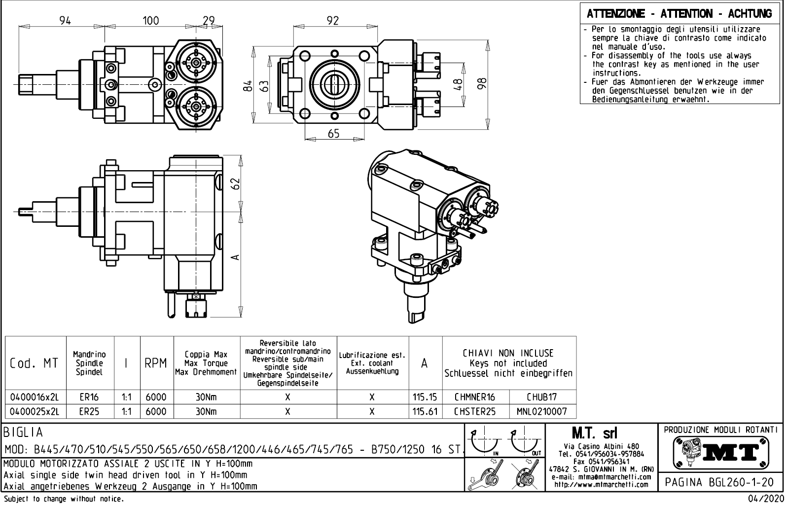 - Biglia - série BV 210 / 315
