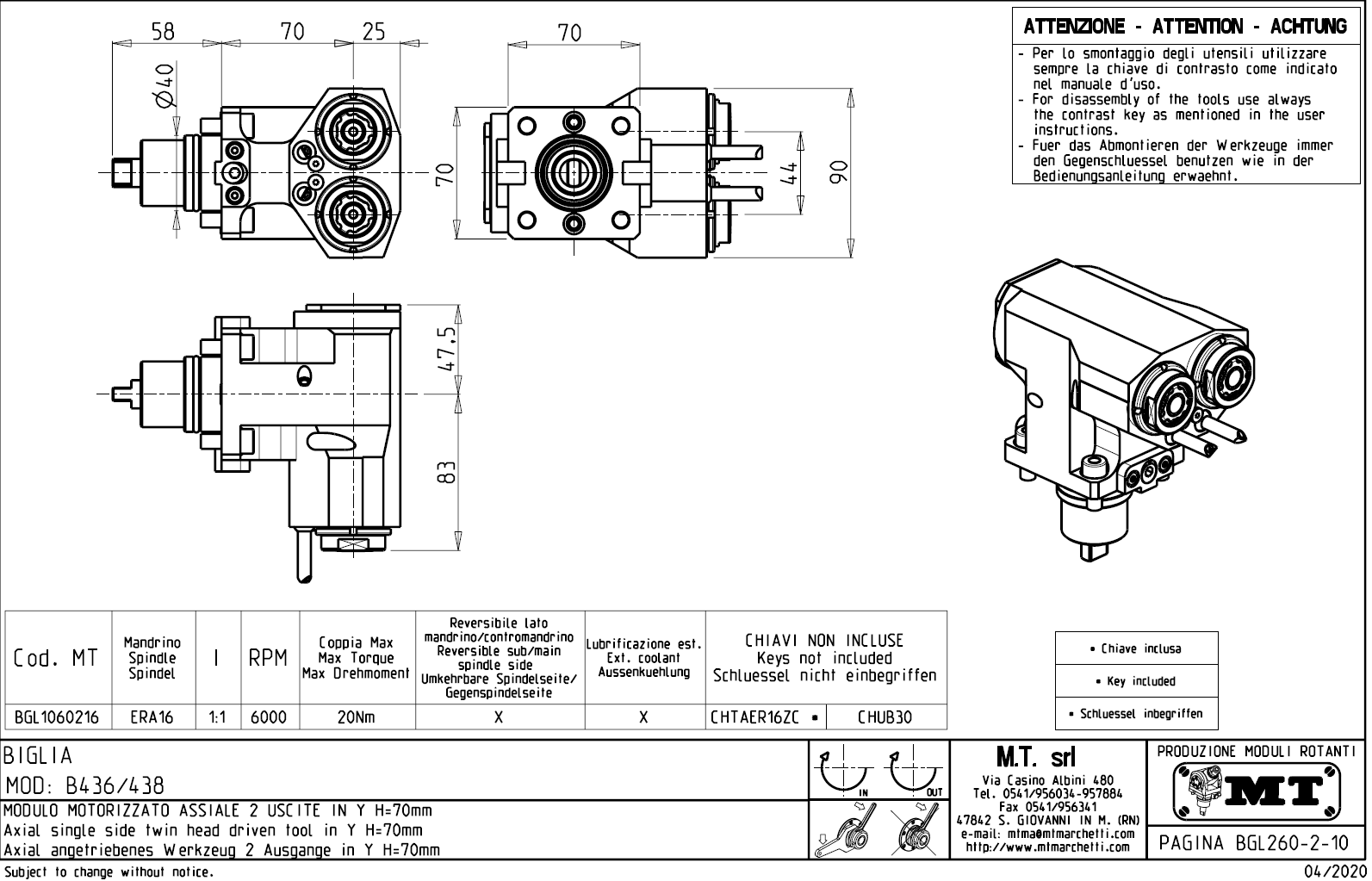 Axiální rotační držák nástrojů pro stroje s nástrojovou hlavou BMT40.