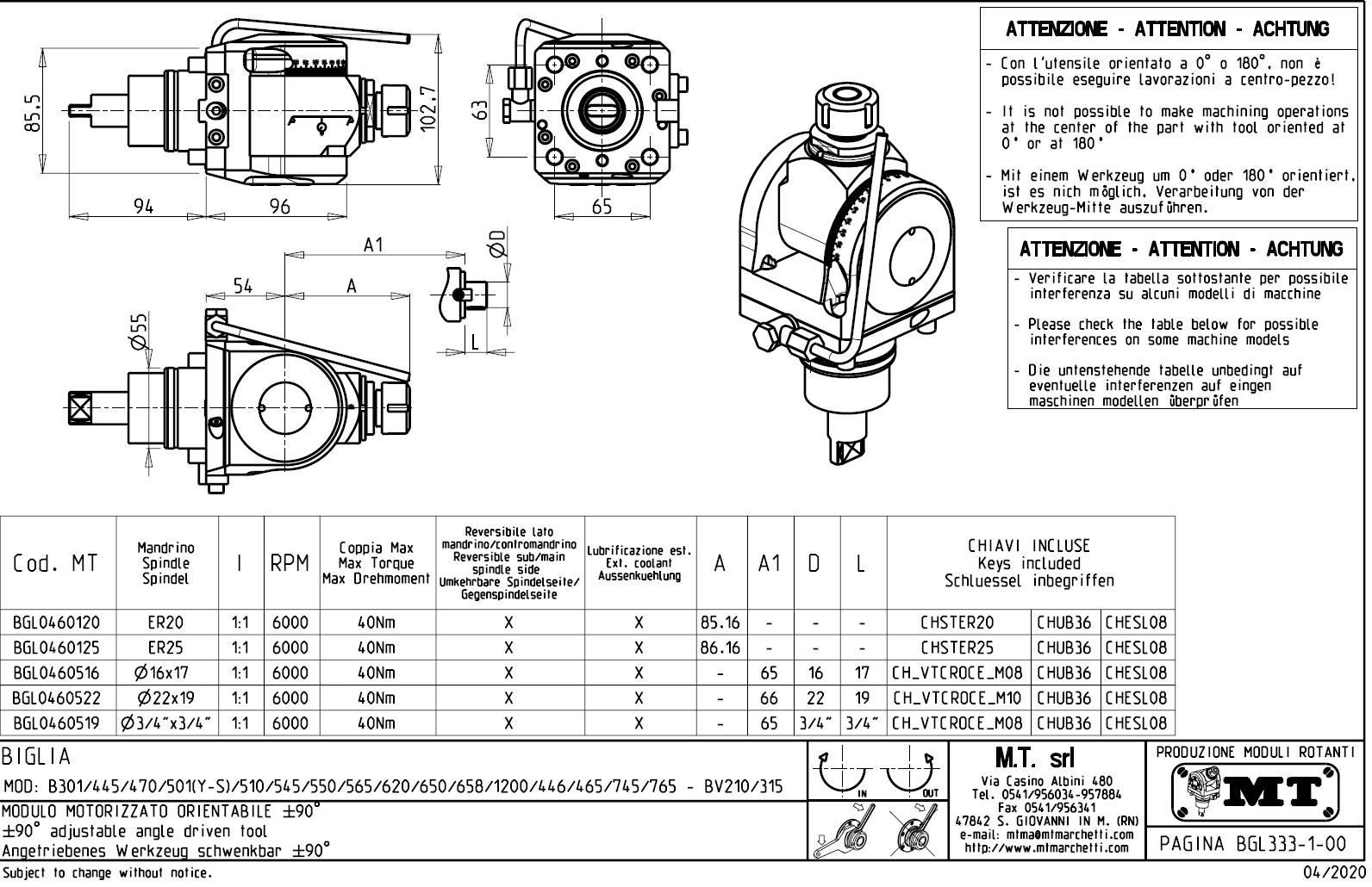 Úhlově nastavitelný rotační držák nástrojů pro stroje s nástrojovou hlavou BMT55.