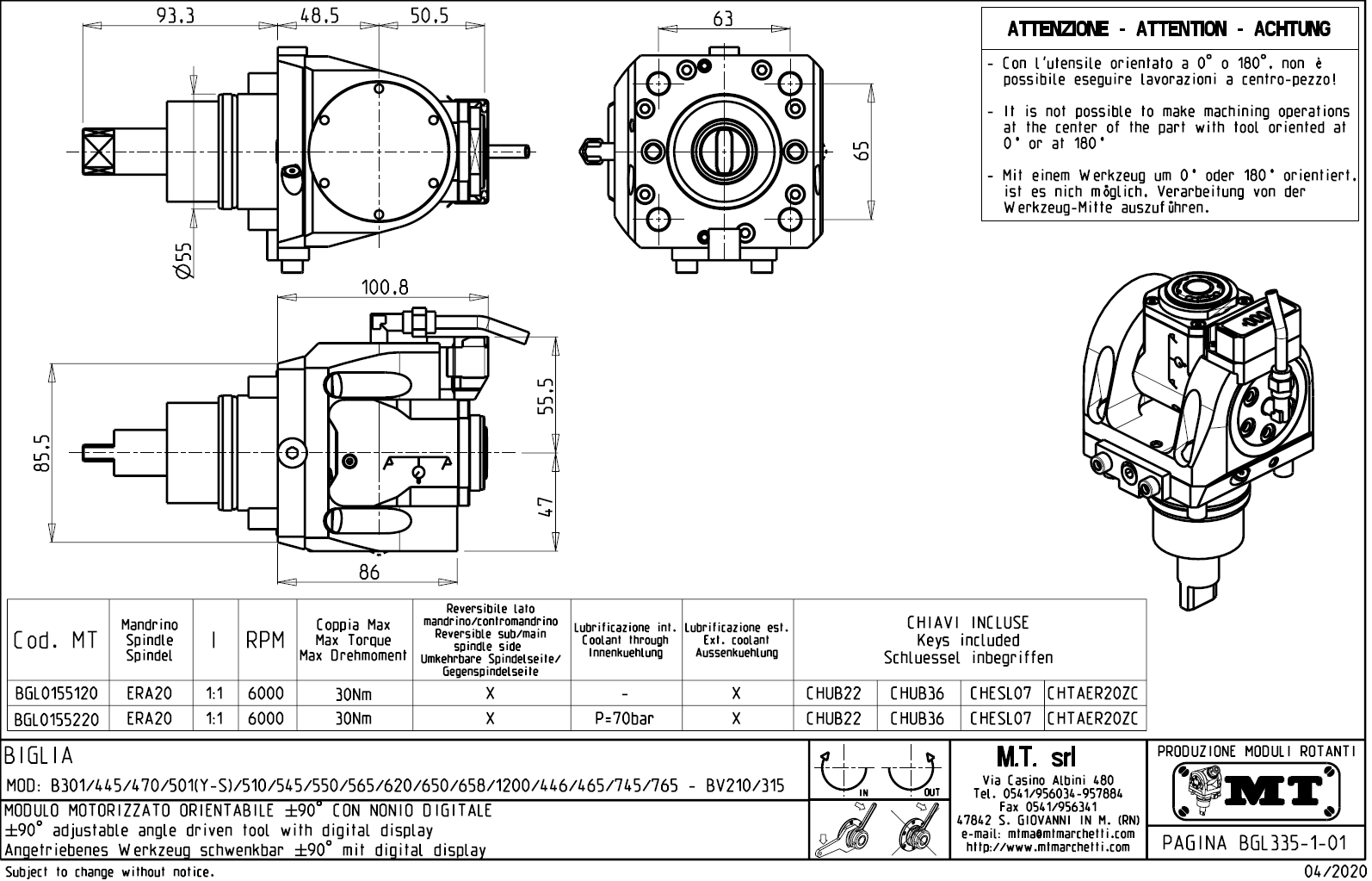 - vnitřní (max.70bar) a venkovní přívod řezné kapaliny.