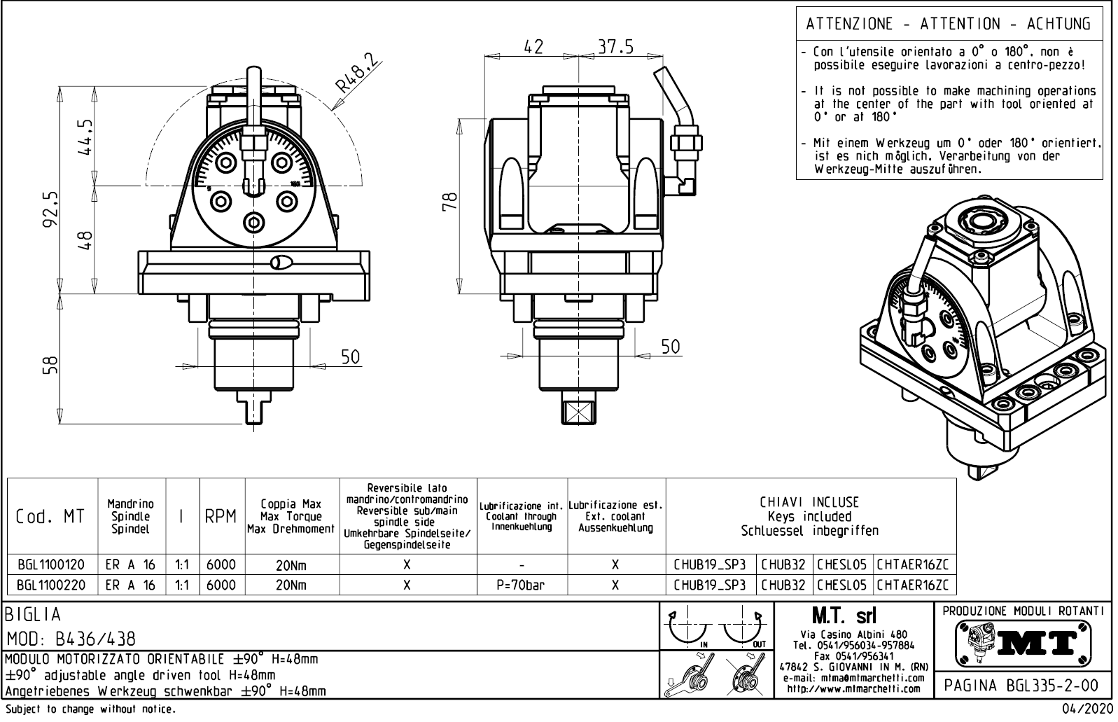 Úhlově nastavitelný rotační držák nástrojů pro stroje s nástrojovou hlavou BMT40.