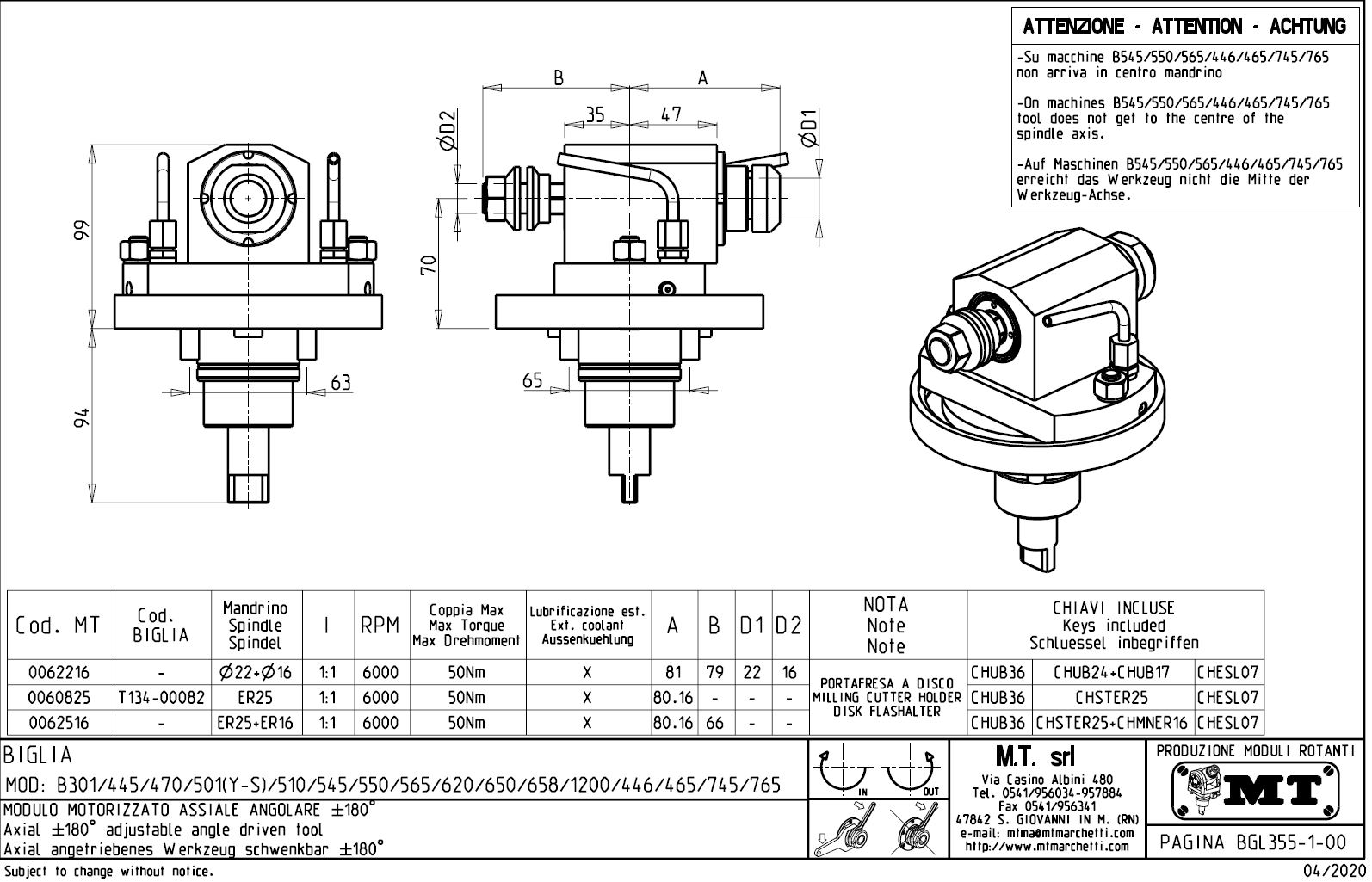 - Biglia - série BV 210 / 315
