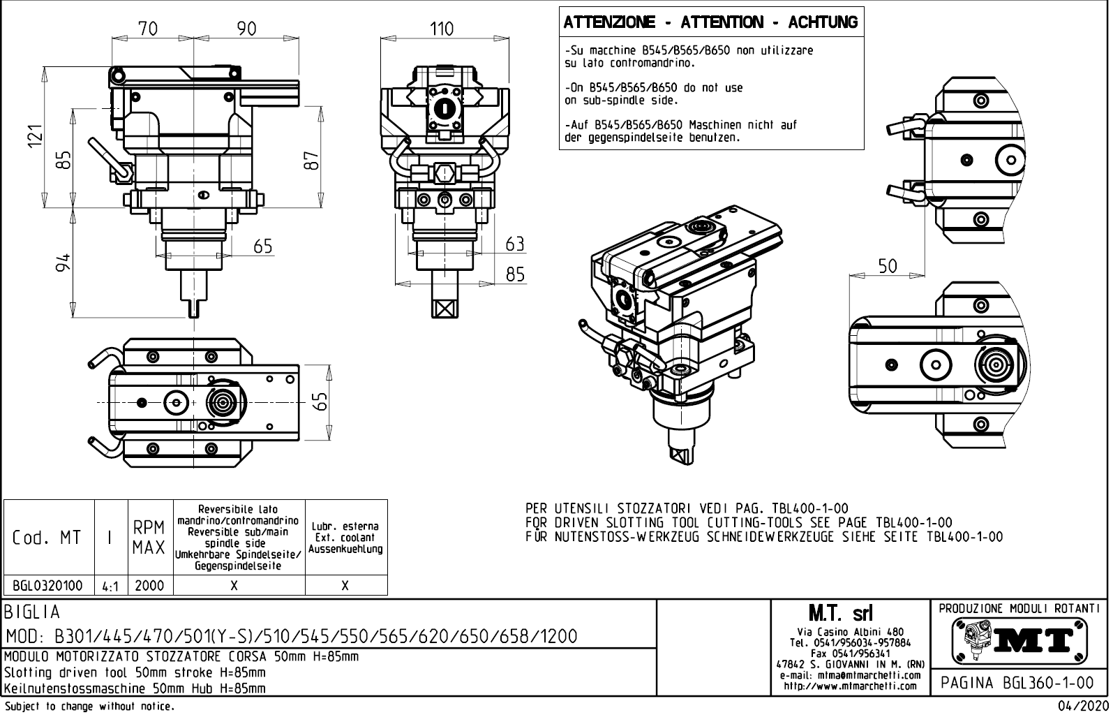 Rotační držák nástrojů pro obrábění drážek pro stroje s nástrojovou hlavou BMT60.