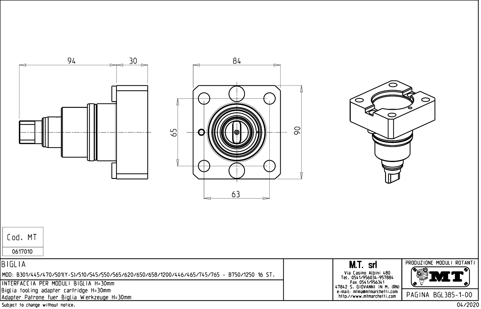 Redukce pro nástrojové držáky pro stroje Biglia pro stroje s nástrojovou hlavou BMT55.