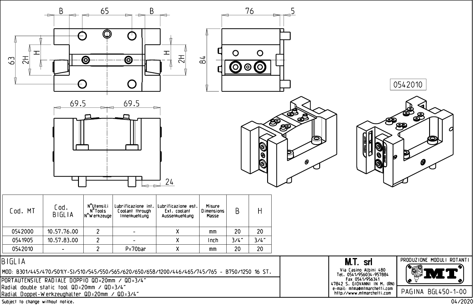 Radiální, pevný (statický) nástrojový držák pro stroje s nástrojovou hlavou typu BMT55.