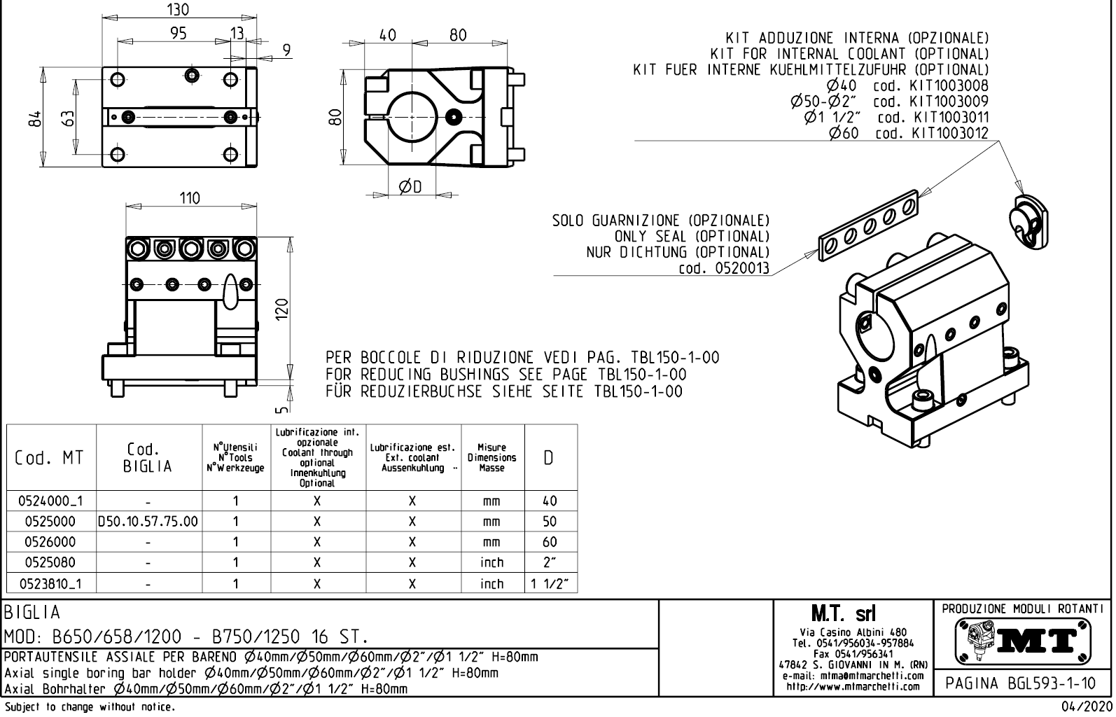 - pro použití vnitřního přívodu chladící kapaliny musí být použit zaslepovací kit, který není součástí standadní dodávky.