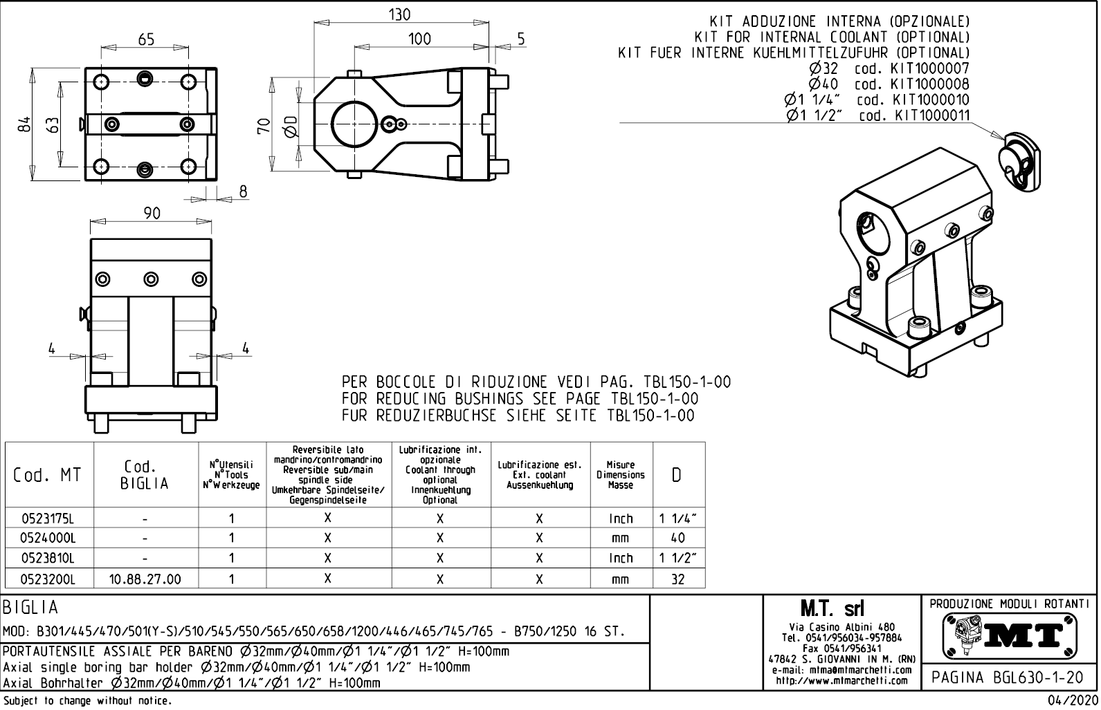 • pro použití vnitřního přívodu chladící kapaliny musí být použit zaslepovací kit, který není součástí standadní dodávky.