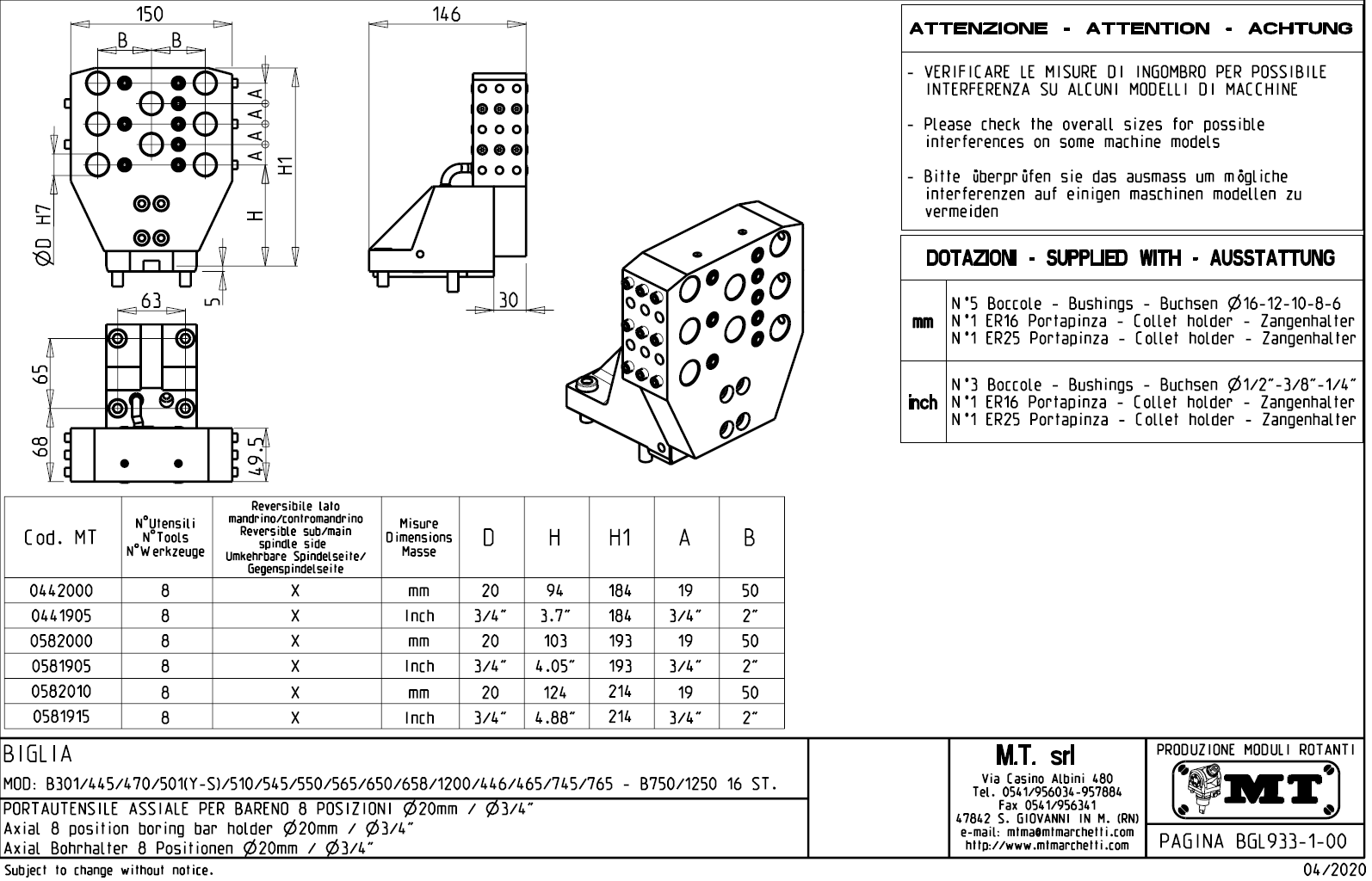 • Biglia - série B 301 / 445 / 470 / 501 (Y-S) / 510 / 545 / 550 / 565 / 620 / 650 / 658 / 1200 / 446 / 465 / 745 / 765