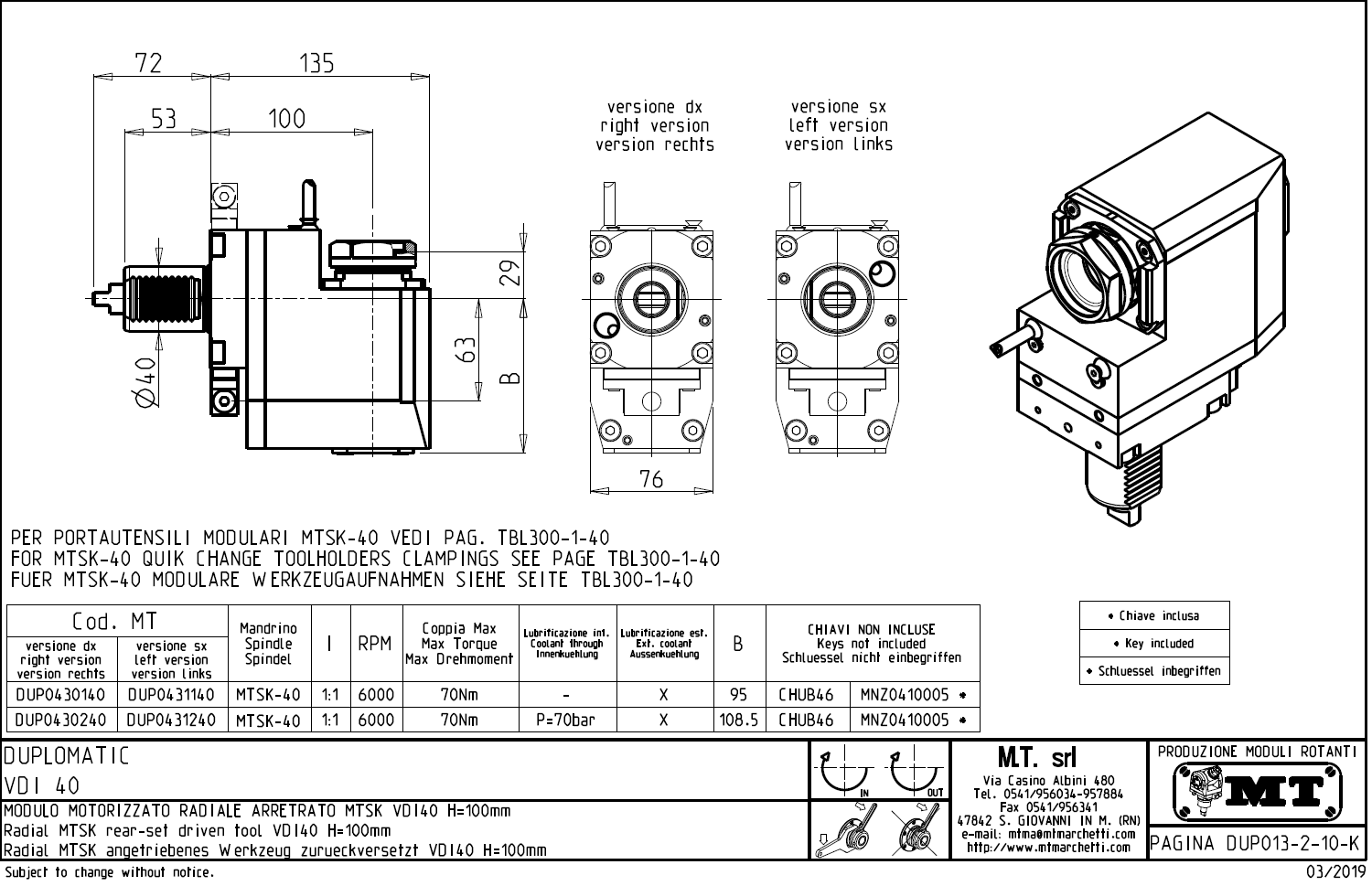 • upnutí nástroje pomocí: rychlovýměnného modulárního systému MTSK.