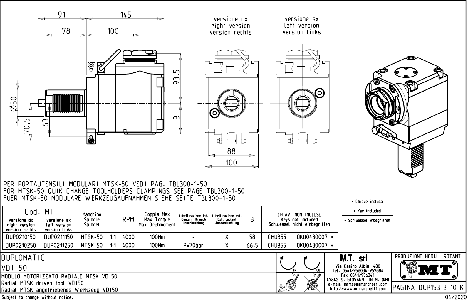 - upnutí nástroje pomocí: rychlovýměnného modulárního systému MTSK.
