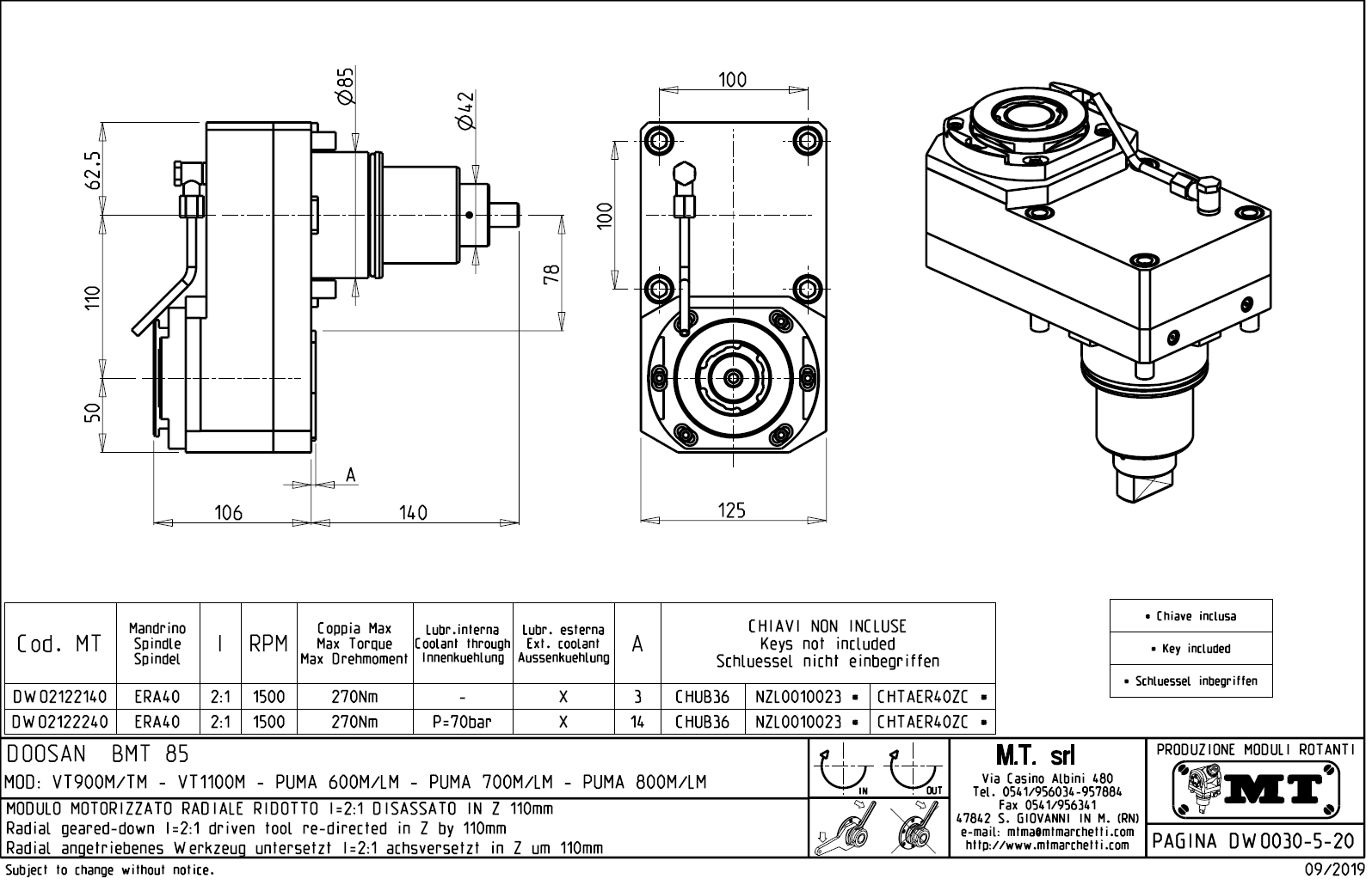 - vnitřní (max.30bar) a venkovní přívod řezné kapaliny.