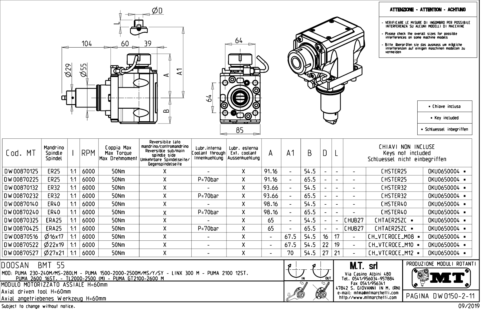 • Doosan - série PUMA 1500 / 2000 / 2500 M / MS / Y / SY