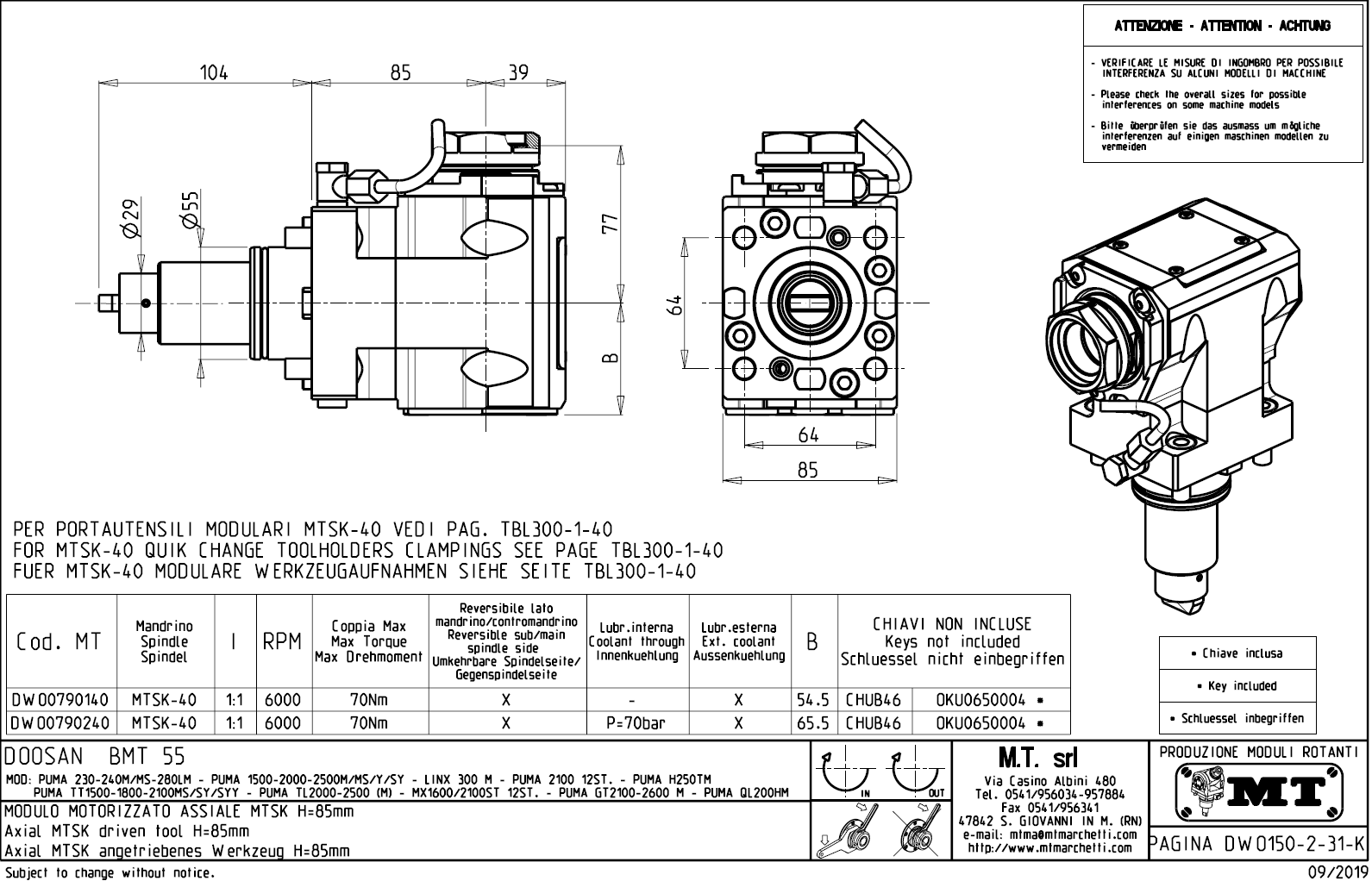 • Hyundai WIA (Kia) - série SKT160TTMS / SKT160TTSY / SKT180TTMS / SKT180TTSY