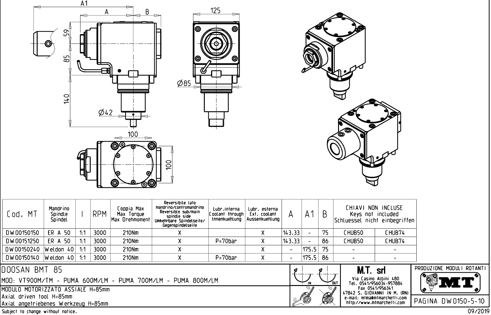 - vnitřní (max.70bar) a venkovní přívod řezné kapaliny.