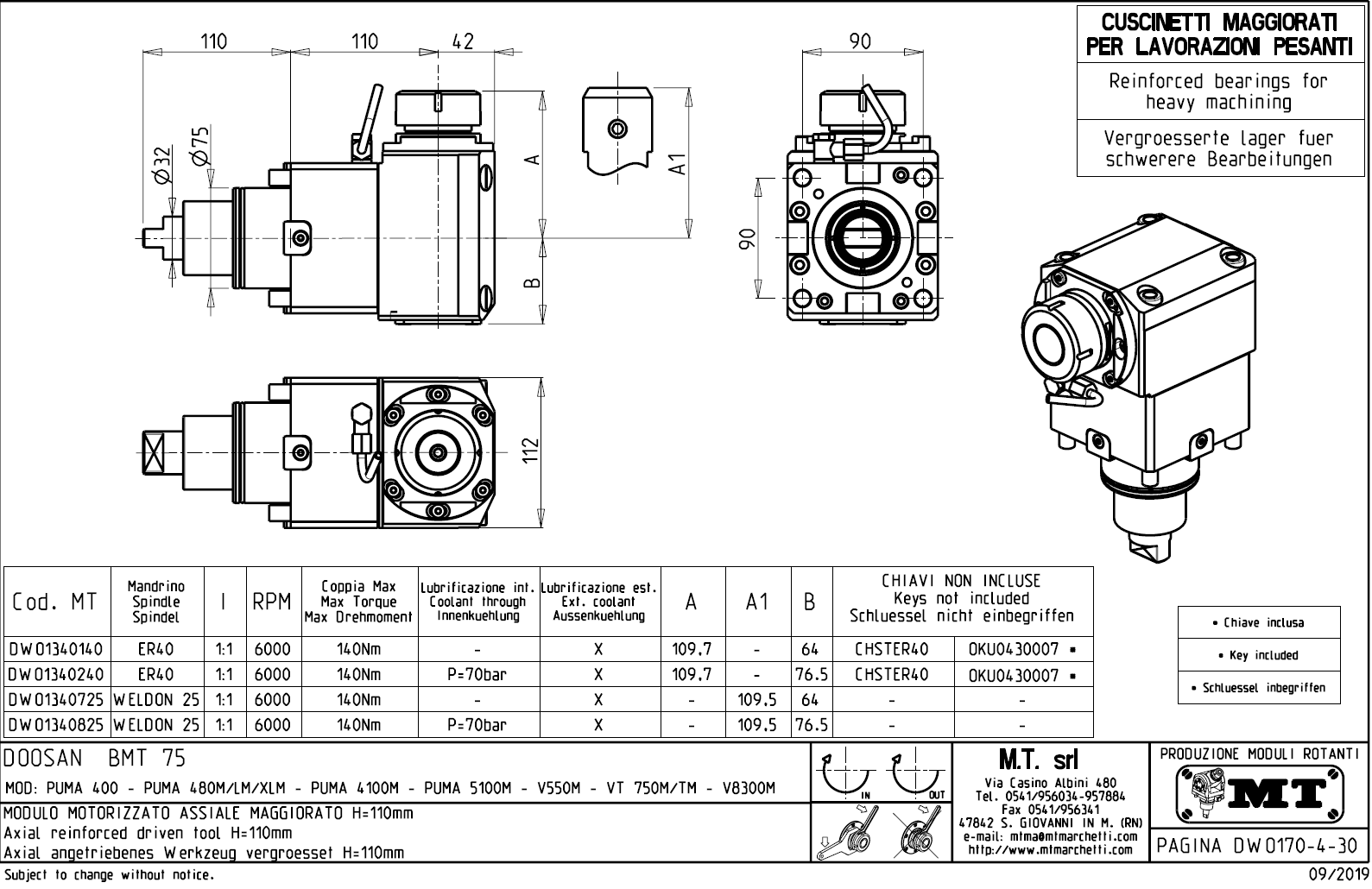 - vnitřní (max.70bar) a venkovní přívod řezné kapaliny.