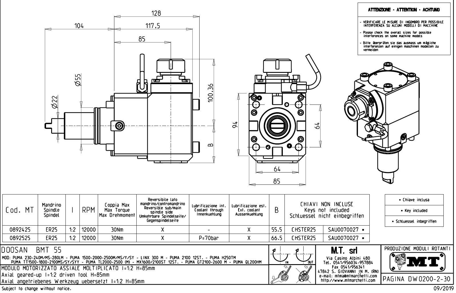 • Doosan - série PUMA 1500 / 2000 / 2500 M / MS / Y / SY