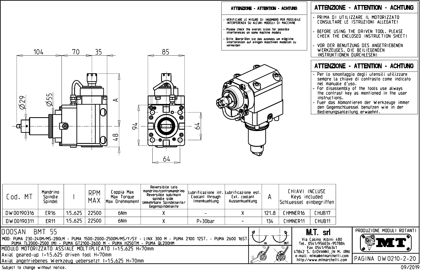 • Hyundai WIA (Kia) - série SKT160TTMS / SKT160TTSY / SKT180TTMS / SKT180TTSY