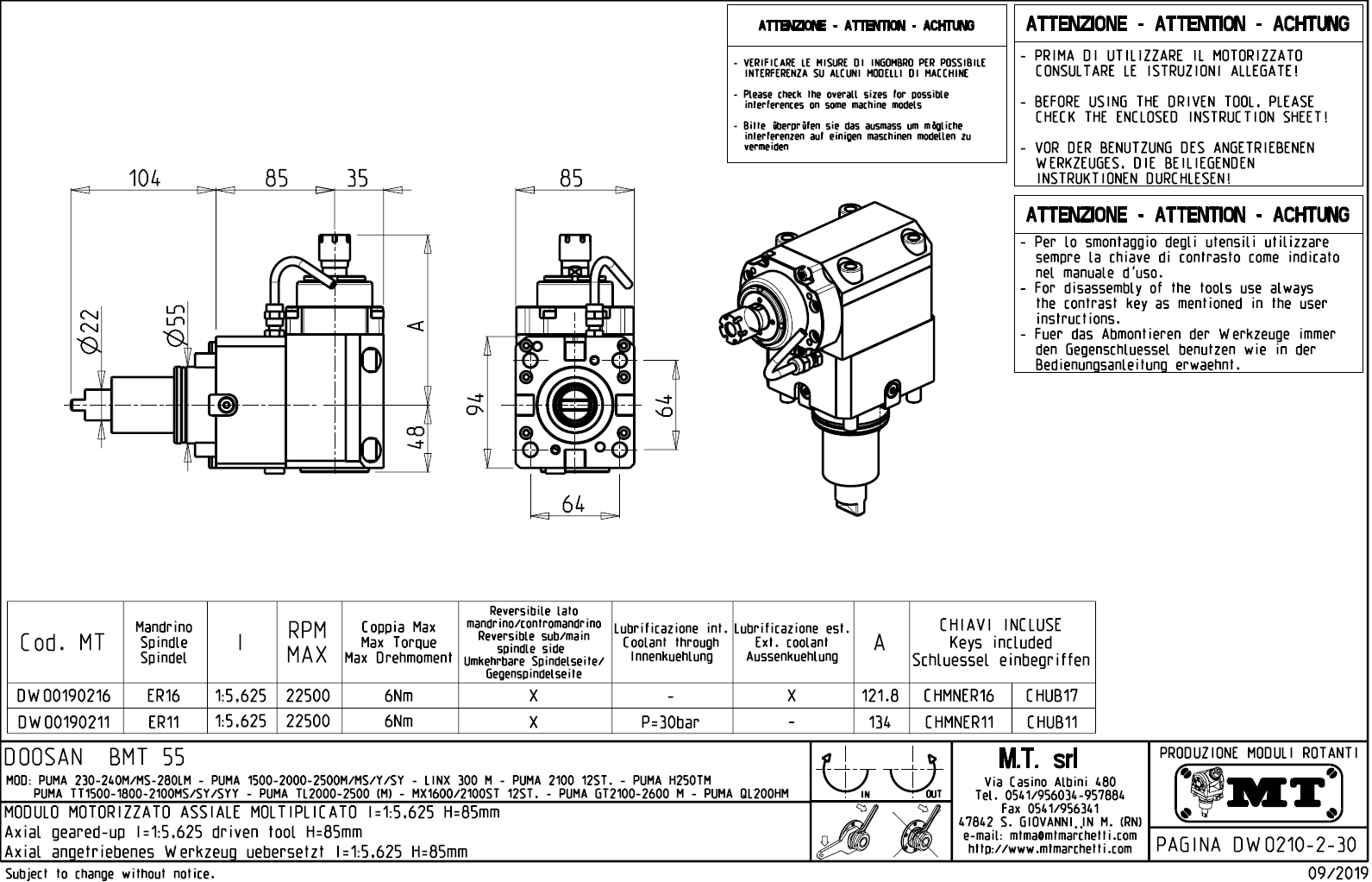 • Doosan - série PUMA 1500 / 2000 / 2500 M / MS / Y / SY