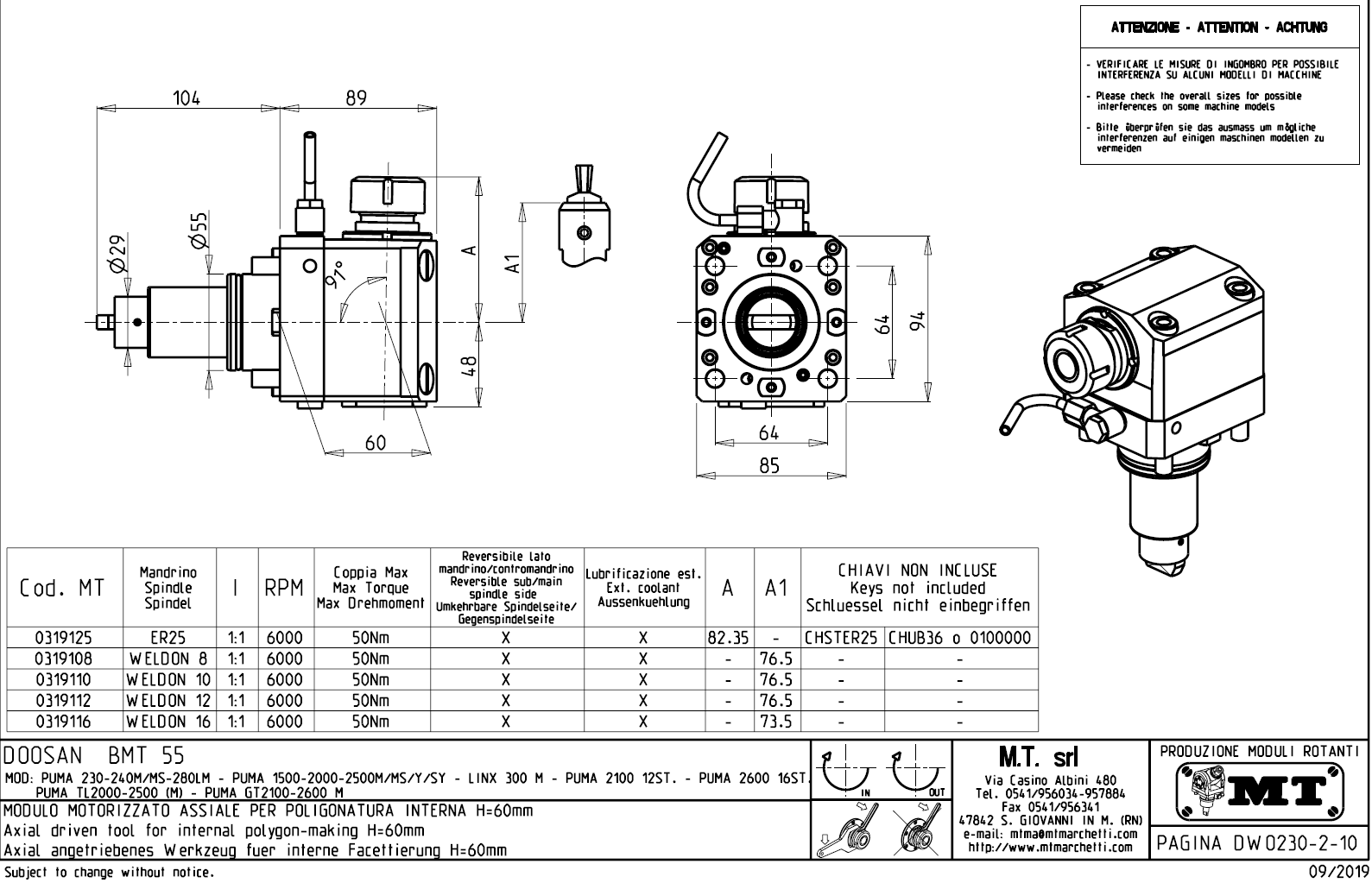 • Hyundai WIA (Kia) - série SKT160TTMS / SKT160TTSY / SKT180TTMS / SKT180TTSY