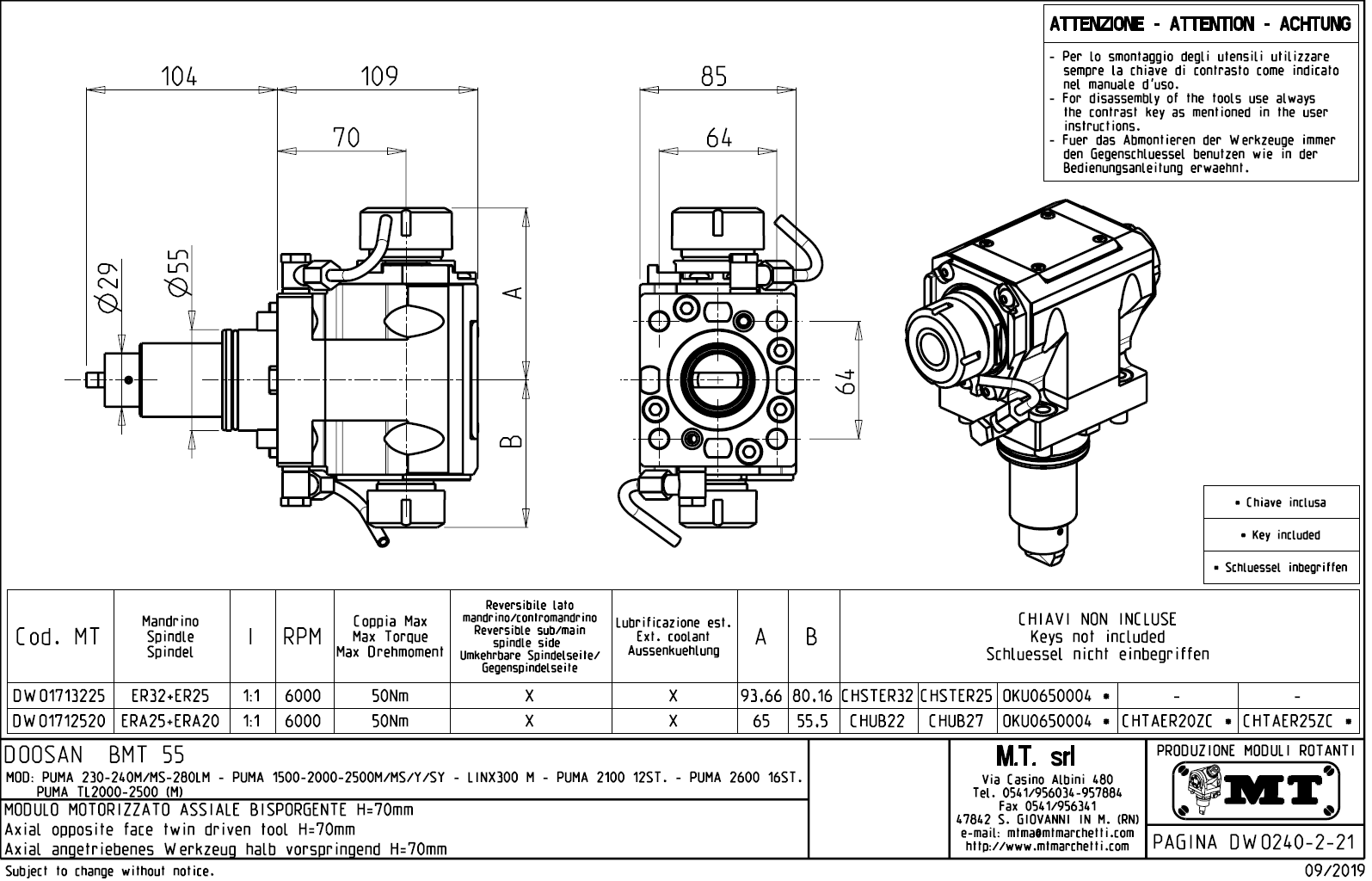 - Hyundai WIA (Kia) - série SKT160TTMS / SKT160TTSY / SKT180TTMS / SKT180TTSY