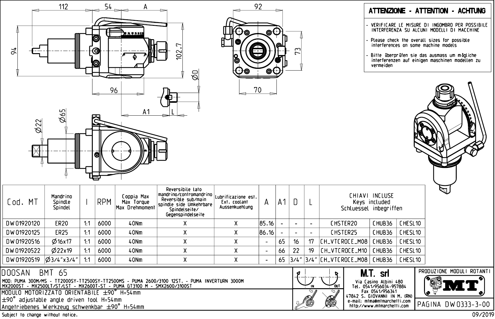 Úhlově nastavitelný rotační držák nástrojů pro stroje s nástrojovou hlavou BMT65.