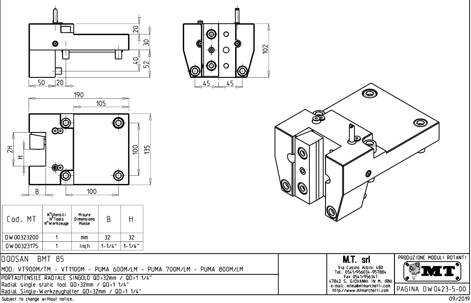 Radiální, pevný (statický) nástrojový držák pro stroje s nástrojovou hlavou typu BMT85.