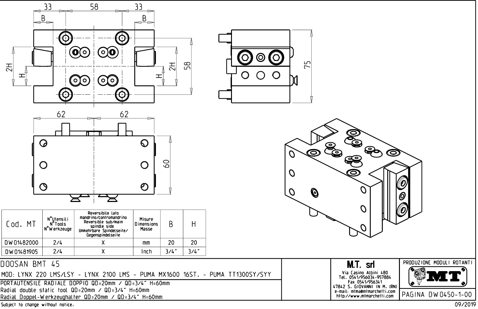 Radiální, pevný (statický) nástrojový držák pro stroje s nástrojovou hlavou typu BMT45.