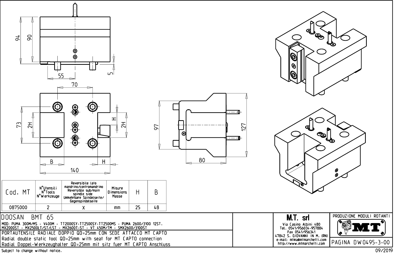 Radiální, pevný (statický) nástrojový držák pro stroje s nástrojovou hlavou typu BMT65.
