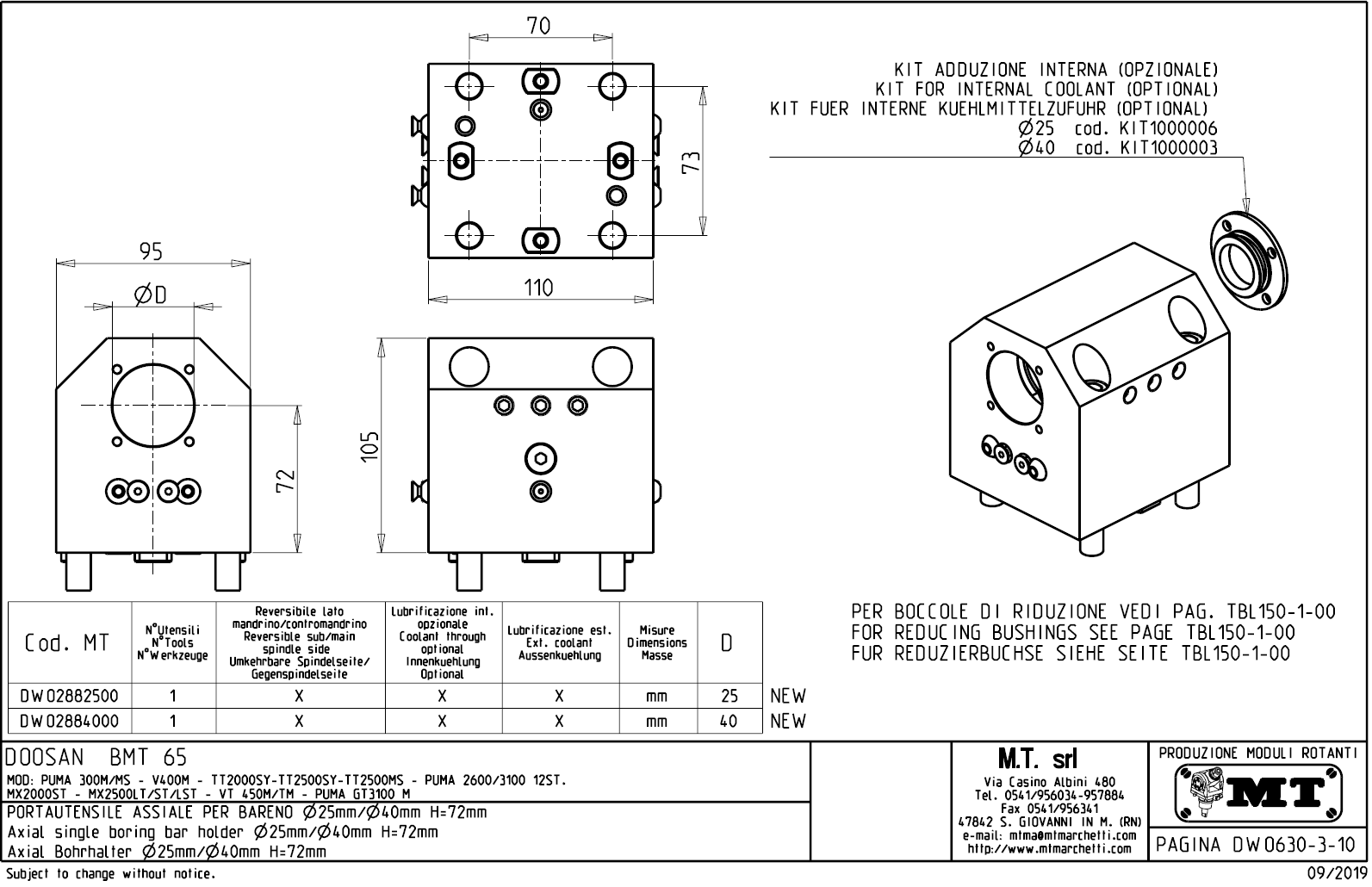 • pro použití vnitřního přívodu chladící kapaliny musí být použit zaslepovací kit, který není součástí standadní dodávky.