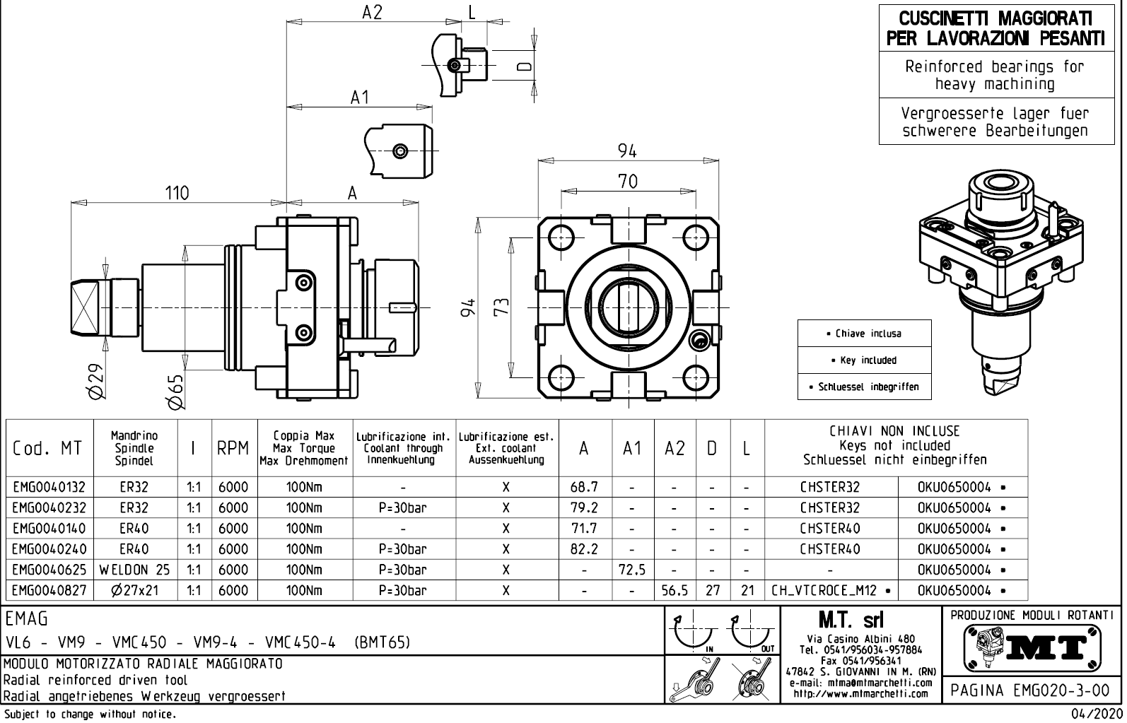 - vnitřní (max.30bar) a venkovní přívod řezné kapaliny.