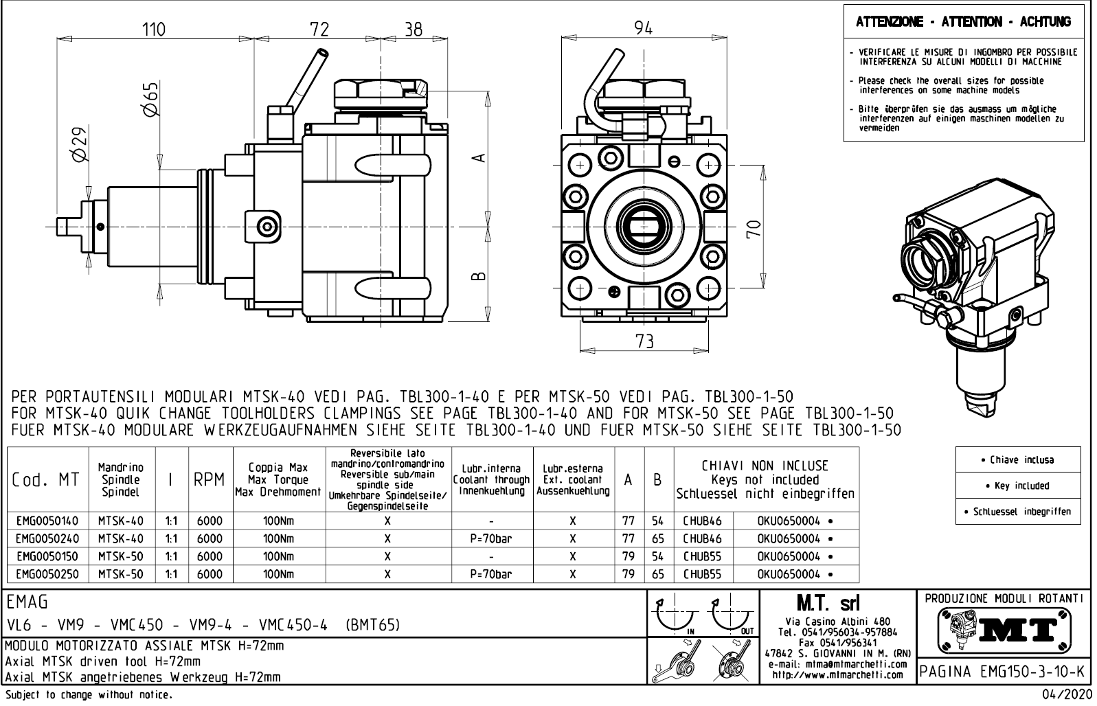 Axiální rotační držák nástrojů pro stroje s nástrojovou hlavou BMT65.