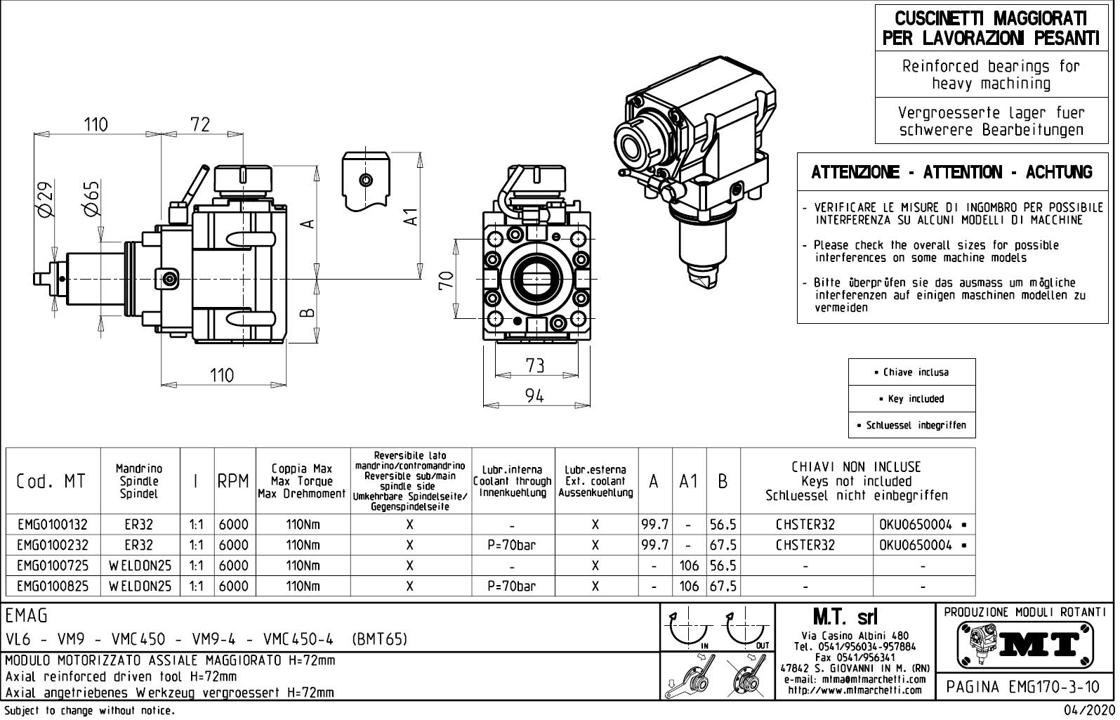 - vnitřní (max.70bar) a venkovní přívod řezné kapaliny.