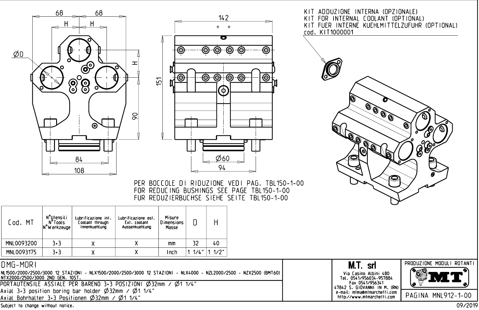 - pro použití vnitřního přívodu chladící kapaliny musí být použit zaslepovací kit, který není součástí standadní dodávky.