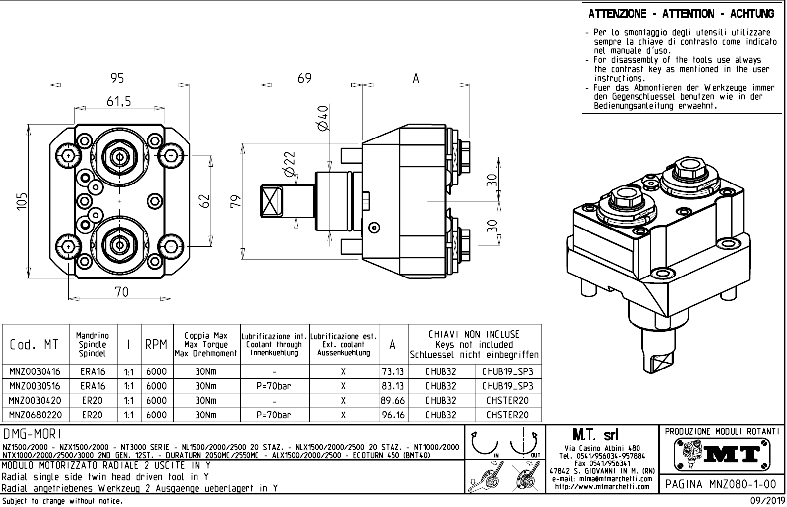 Radiální rotační držák nástrojů pro stroje DMG Mori s nástrojovou hlavou BMT40.