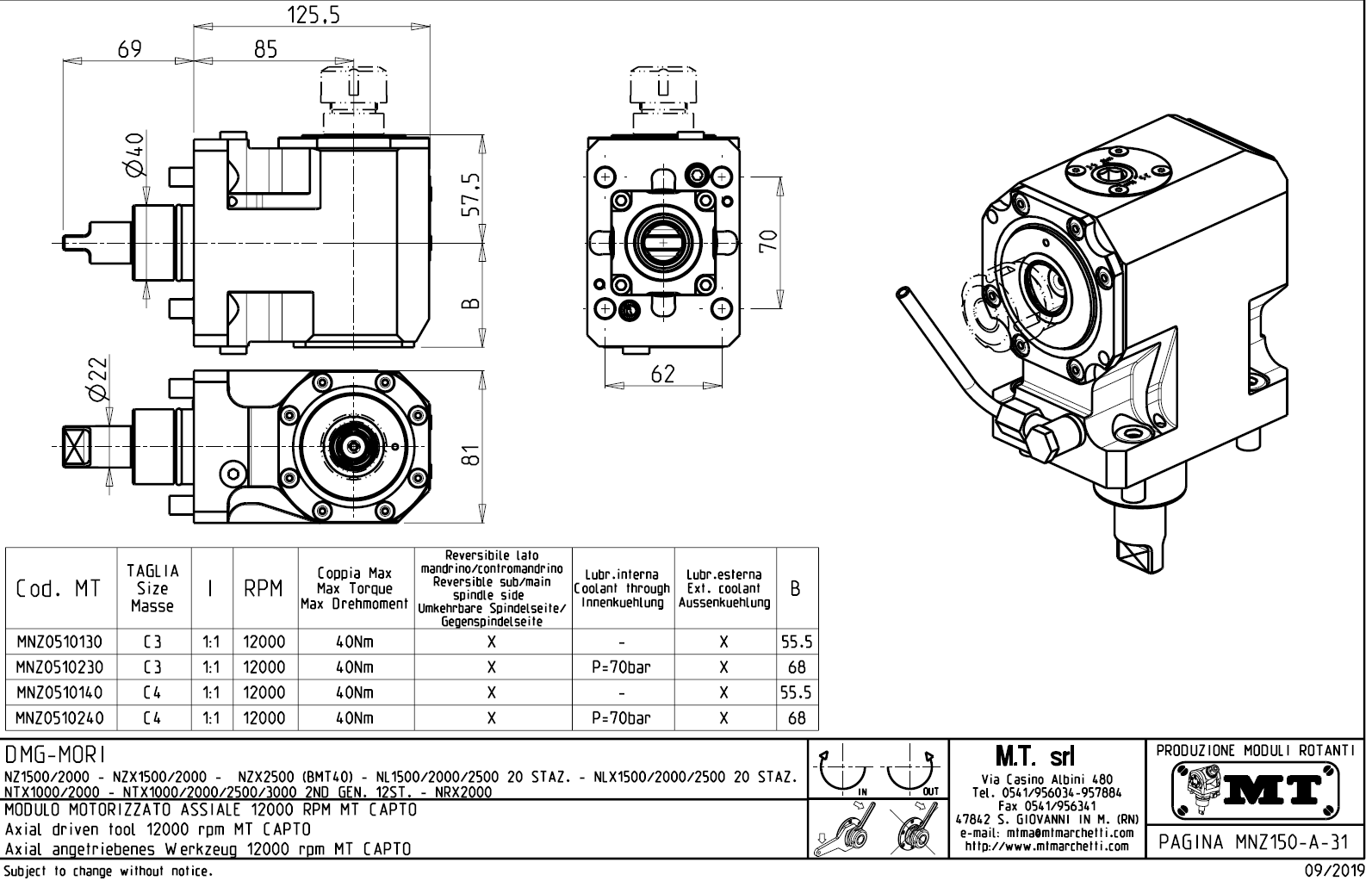 - vnitřní (max.70bar) a venkovní přívod řezné kapaliny.