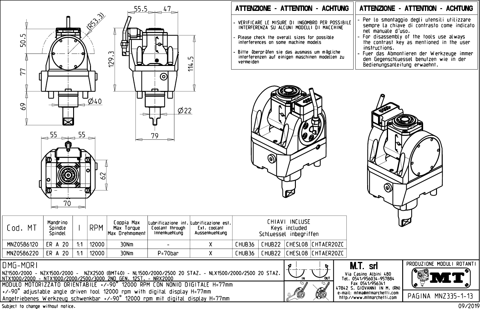 - vnitřní (max.70bar) a venkovní přívod řezné kapaliny.