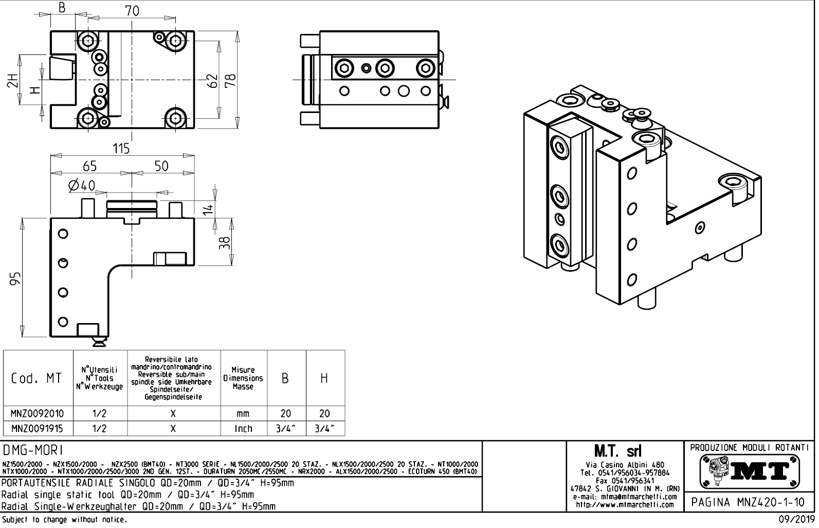 Radiální pevný, statický nástrojový držák pro stroje DMG Mori s nástrojovou hlavou BMT40