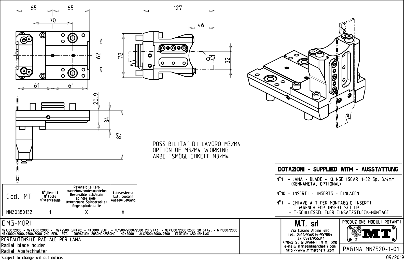Radiální pevný držák nástrojů pro vnější soustružení: