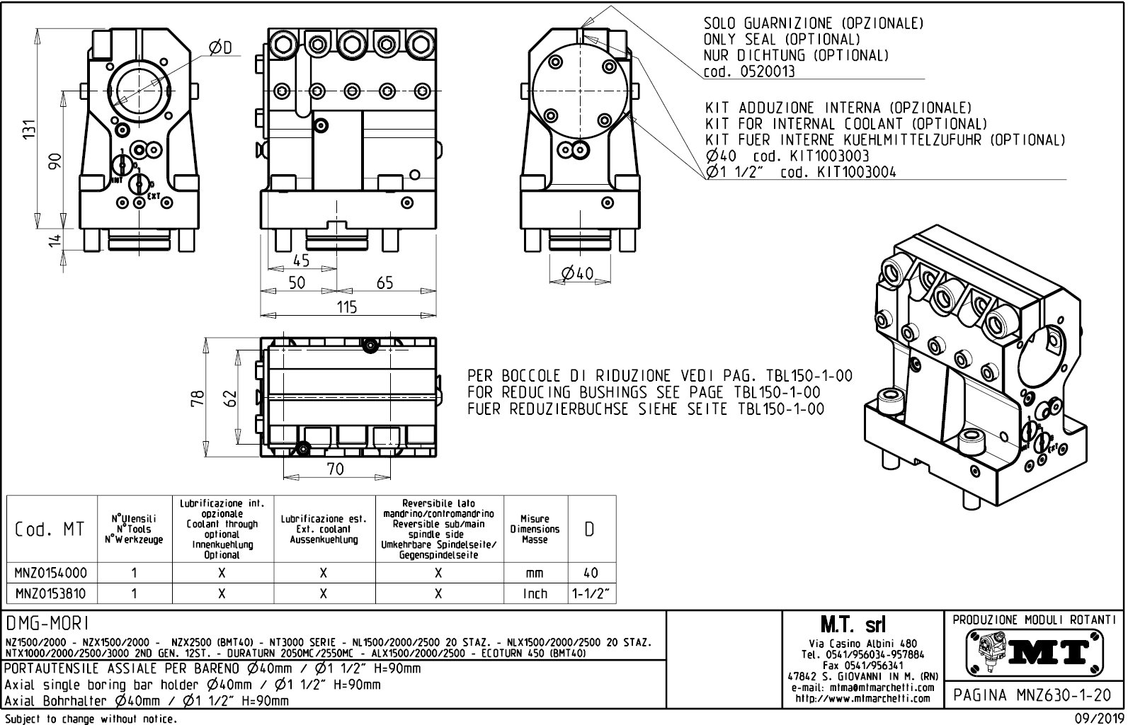 Axiální pevný, statický nástrojový držák pro stroje DMG Mori s nástrojovou hlavou BMT40