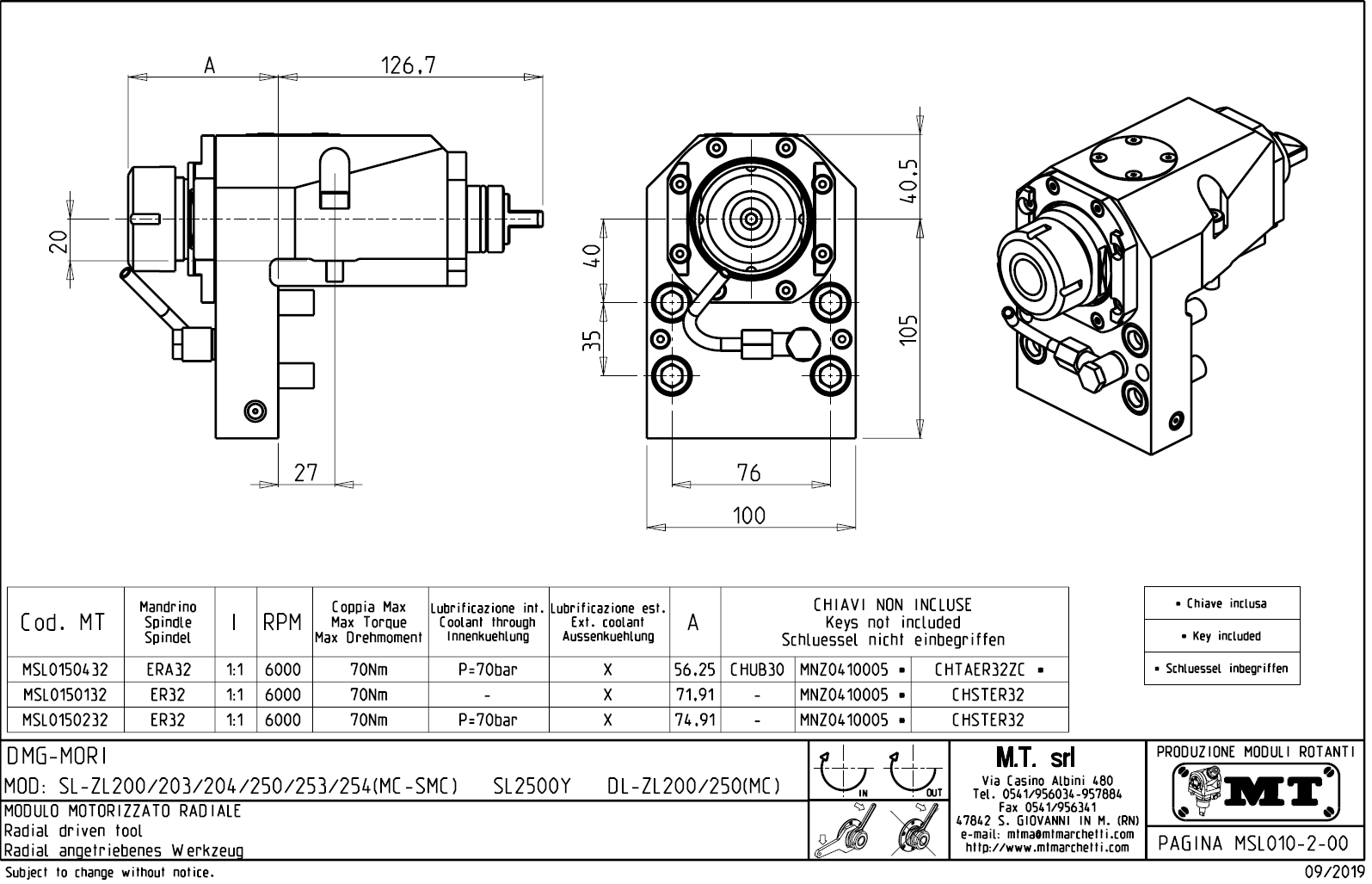 Radiální rotační držák nástrojů pro stroje DMG Mori s nástrojovou hlavou SL20.
