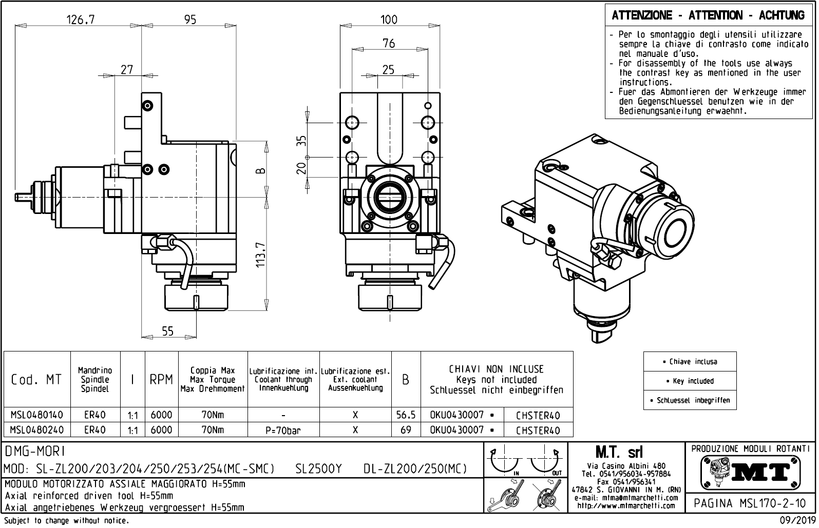 Axiální rotační držák nástrojů pro stroje DMG Mori s nástrojovou hlavou SL20.